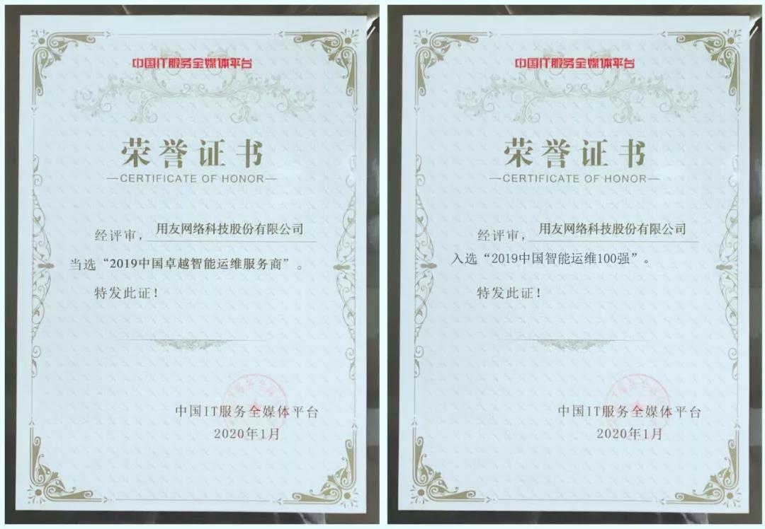 2009年,工信部正式成立了ITSS指導(dǎo)協(xié)調(diào)組和工作組,經(jīng)過11年的發(fā)展,ITSS在信息技術(shù)服務(wù)標(biāo)準(zhǔn)化方面取得了優(yōu)異的成績,中國IT服務(wù)產(chǎn)業(yè)也獲得了突飛猛進(jìn)的發(fā)展。為表彰和激勵(lì)人物、企業(yè)和機(jī)構(gòu),加快信息技術(shù)服務(wù)標(biāo)準(zhǔn)研制和推廣工作,推進(jìn)信息技術(shù)服務(wù)產(chǎn)業(yè)的健康持續(xù)發(fā)展,中國電子工業(yè)標(biāo)準(zhǔn)化技術(shù)協(xié)會(huì)ITSS分會(huì)決定開展中國信息技術(shù)服務(wù)產(chǎn)業(yè)發(fā)展成果征集工作,經(jīng)過組委會(huì)和專家評(píng)審委員會(huì)的多輪評(píng)審,用友入選2019-2020中國信息技術(shù)服務(wù)智能運(yùn)維100強(qiáng)榜單,并喜獲“2019中國IT服務(wù)領(lǐng)軍企業(yè)”、“2019中國**智能運(yùn)維服務(wù)商“兩項(xiàng)大獎(jiǎng)。